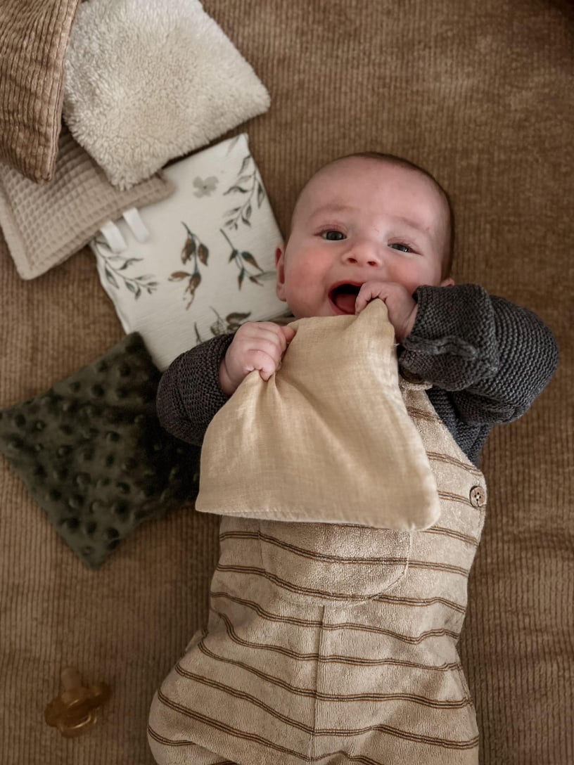 • Laat de kindjes de wereld ontdekken door de zakjes te proeven. Veel kindje stoppen in deze periode alles in de mond om de wereld zo verder te ontdekken.