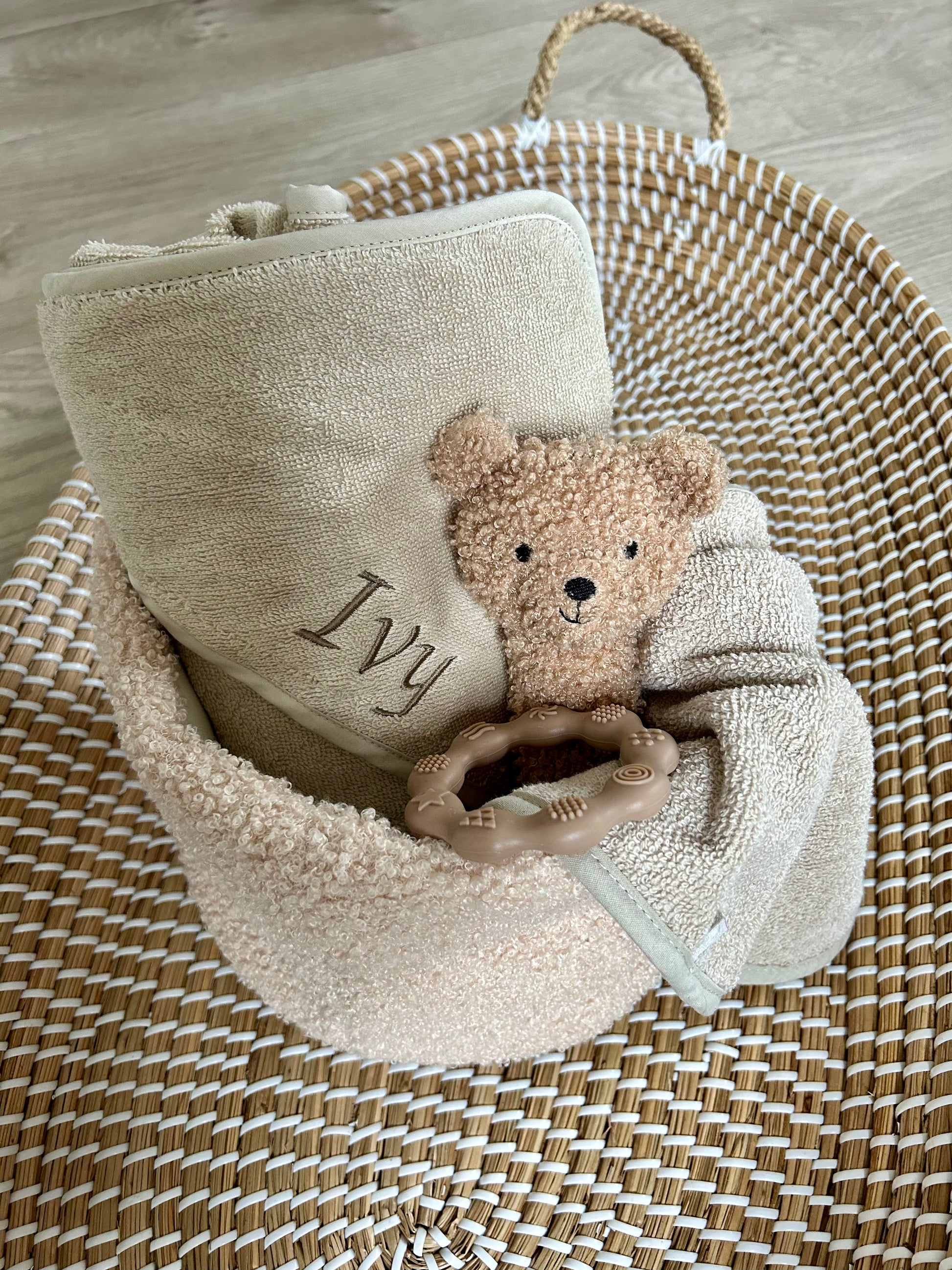Wat deze badcape echt bijzonder maakt, is de mogelijkheid om de naam van je baby of kindje te laten borduren. Dit maakt de badcape niet alleen een functioneel item, maar ook een persoonlijk en uniek cadeau. Of het nu voor je eigen kleintje is, of als kraamcadeau, de gepersonaliseerde badcape is een perfect geschenk dat jaren meegaat.