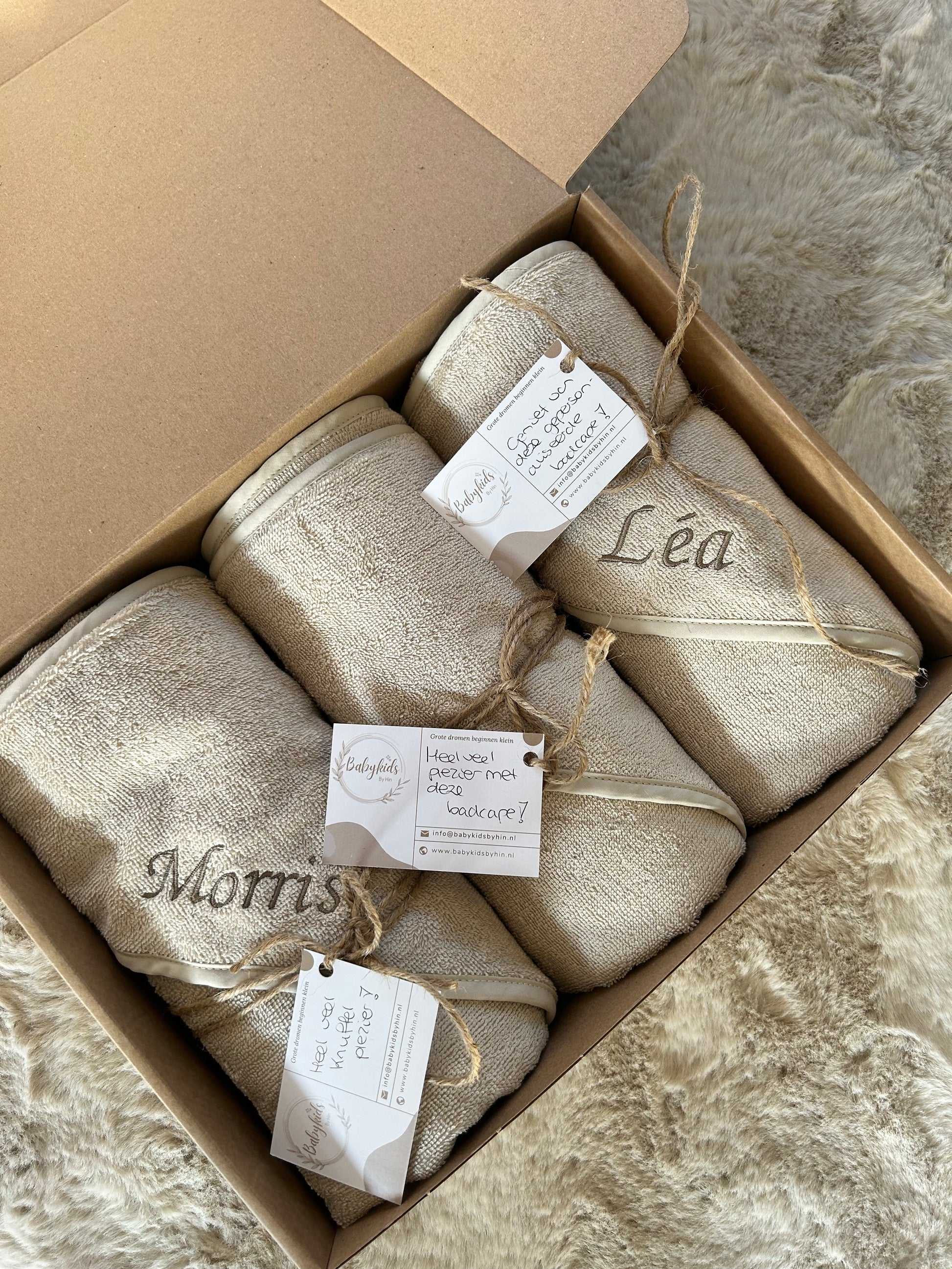 Super leuke beige en groene badcape besteld met naam voor mezelf. Ze zijn super zacht en de naam is mooi geborduurd. De producten kwamen ook snel dus zeker een aanrader om te bestellen.