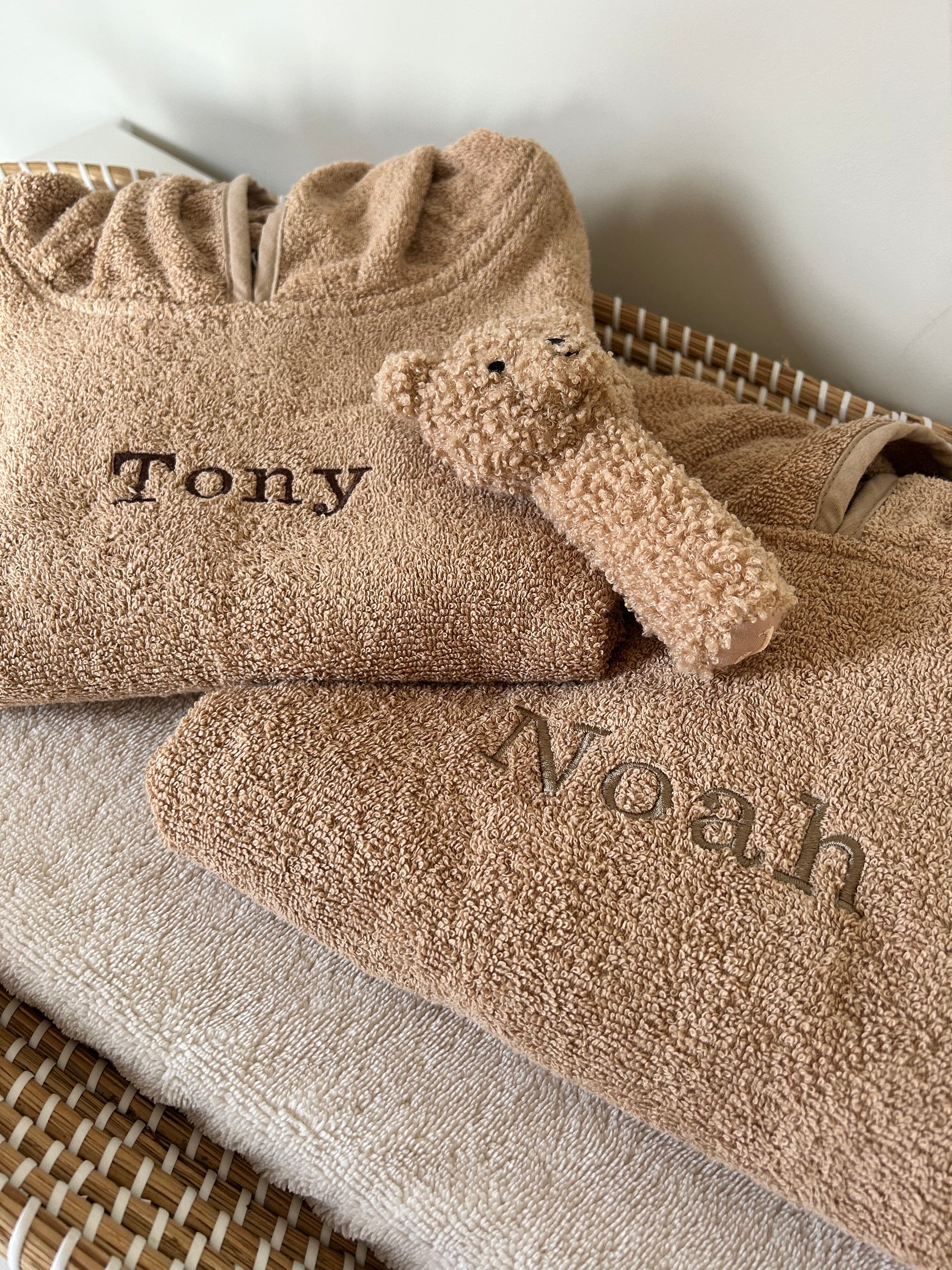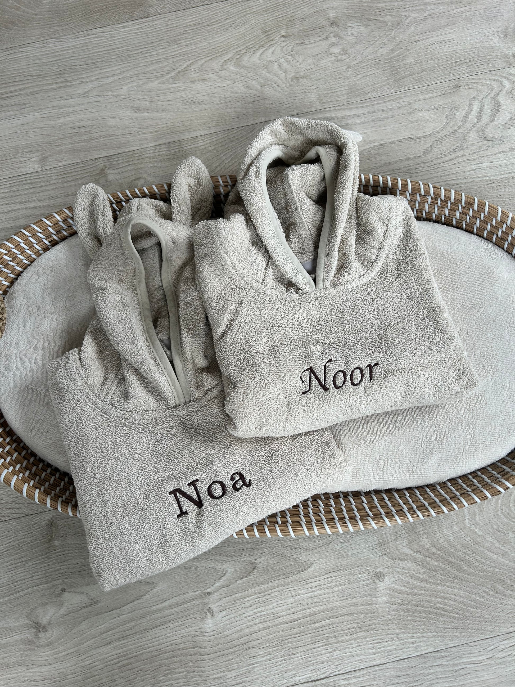 Twee mooie badcapes met naam erop besteld. Prachtig! Mooie kwaliteit en heel mooi geborduurd. Ik weet zeker dat degenen die het cadeau krijgen blij ermee zijn :)