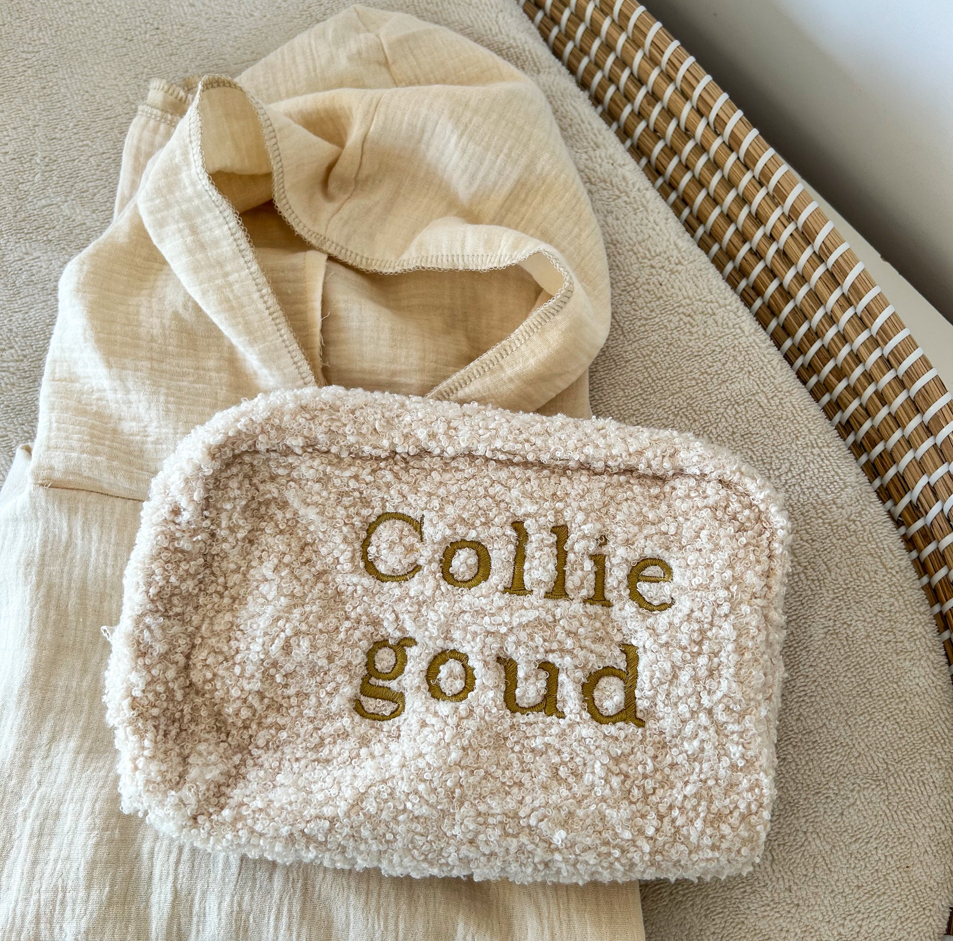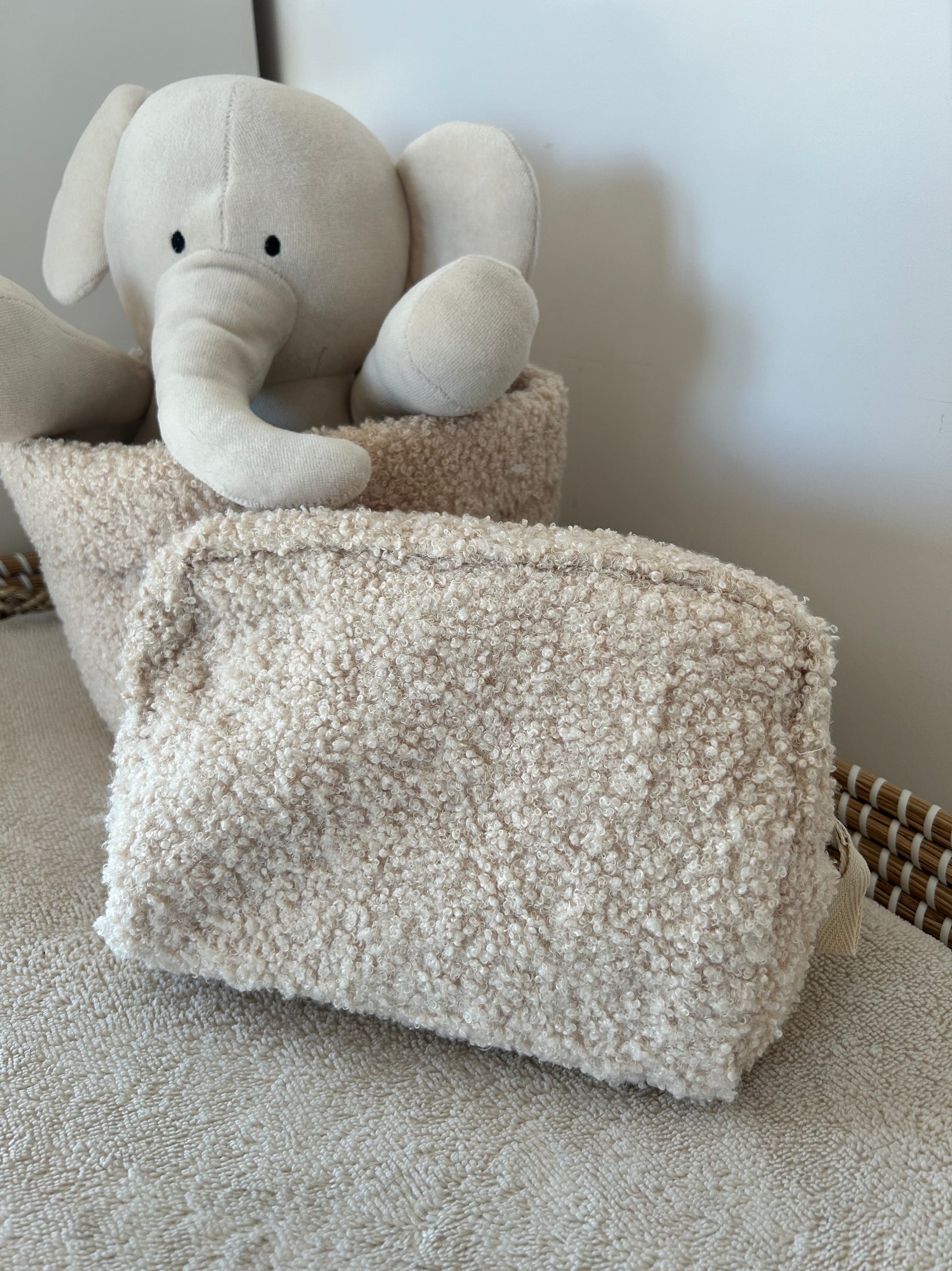 Dit etui is gemaakt van zachte Teddy en komt uit het Boucle thema. Hij is verkrijgbaar in naturel en biscuit.