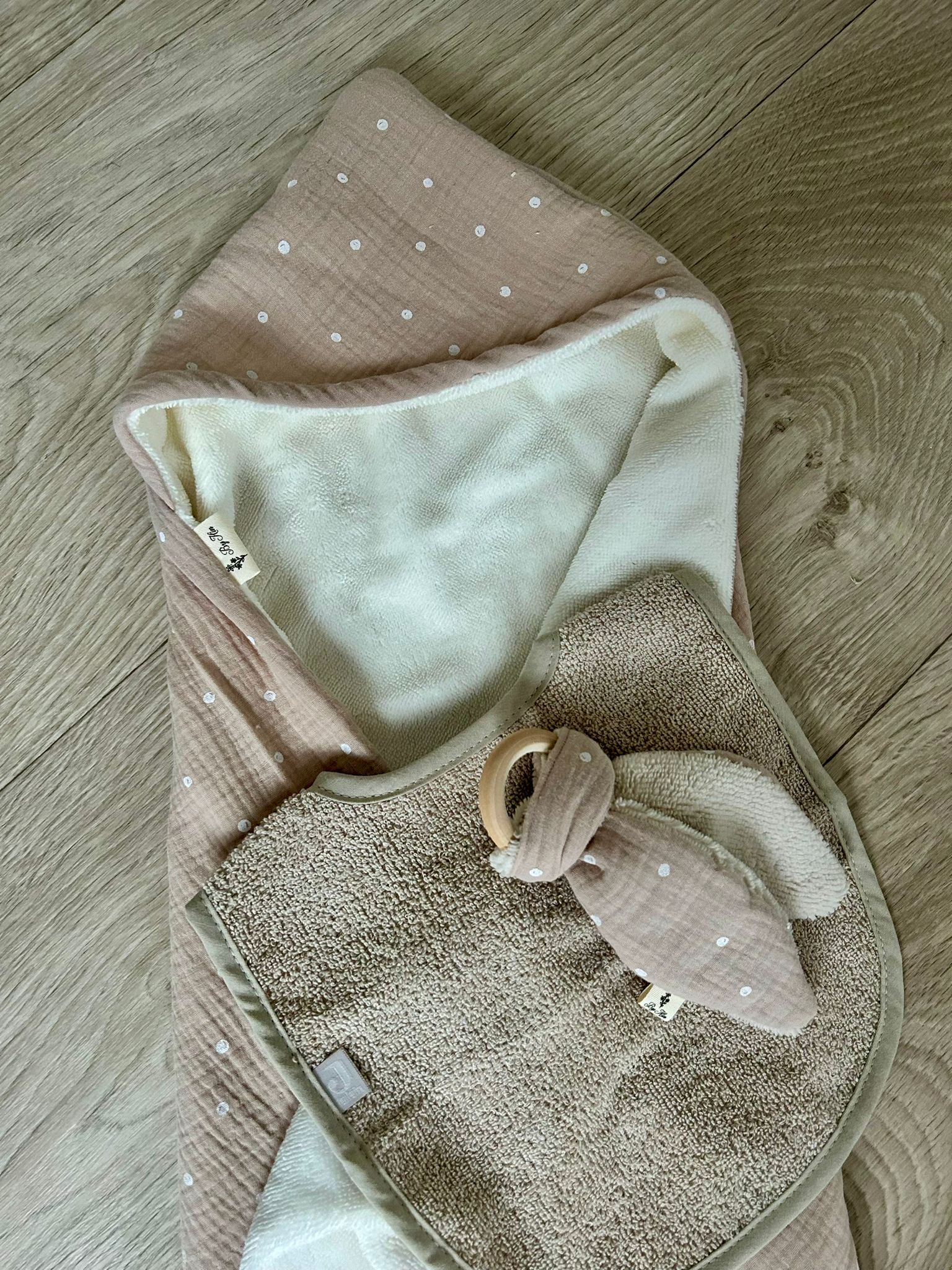 Handgemaakte Wikkeldoek Hydrofiel beige stippen en Bamboe zacht teddy ecru