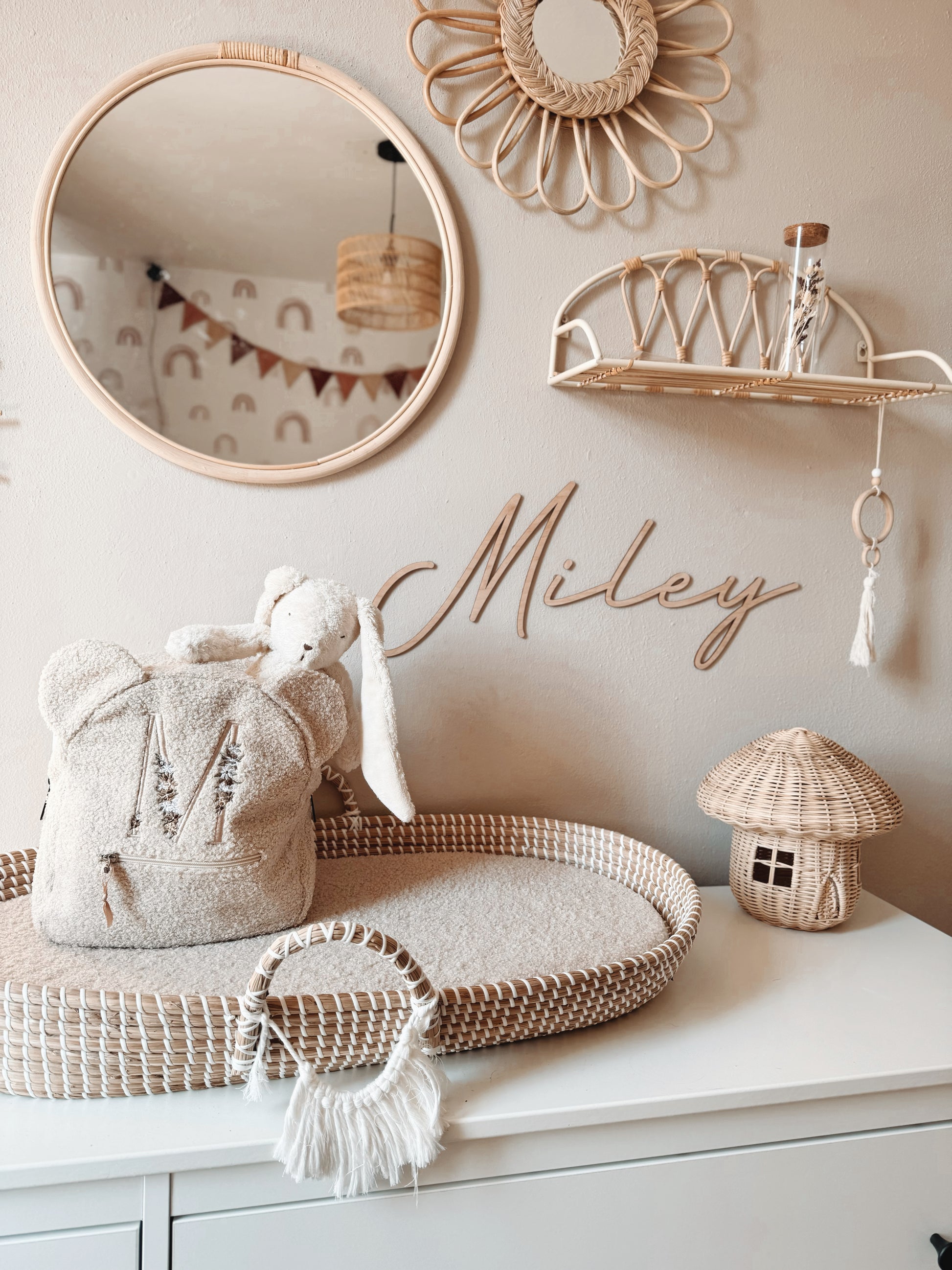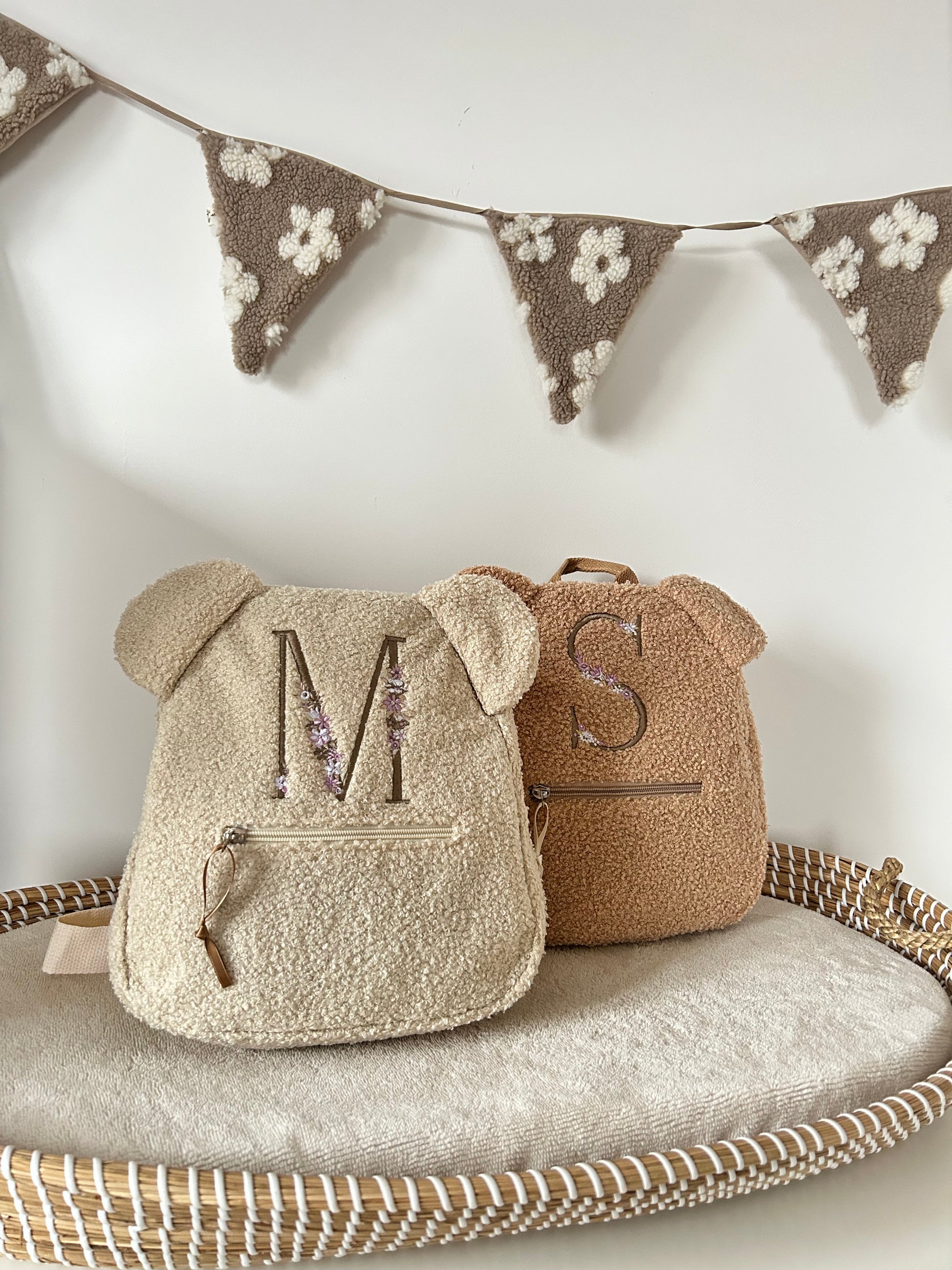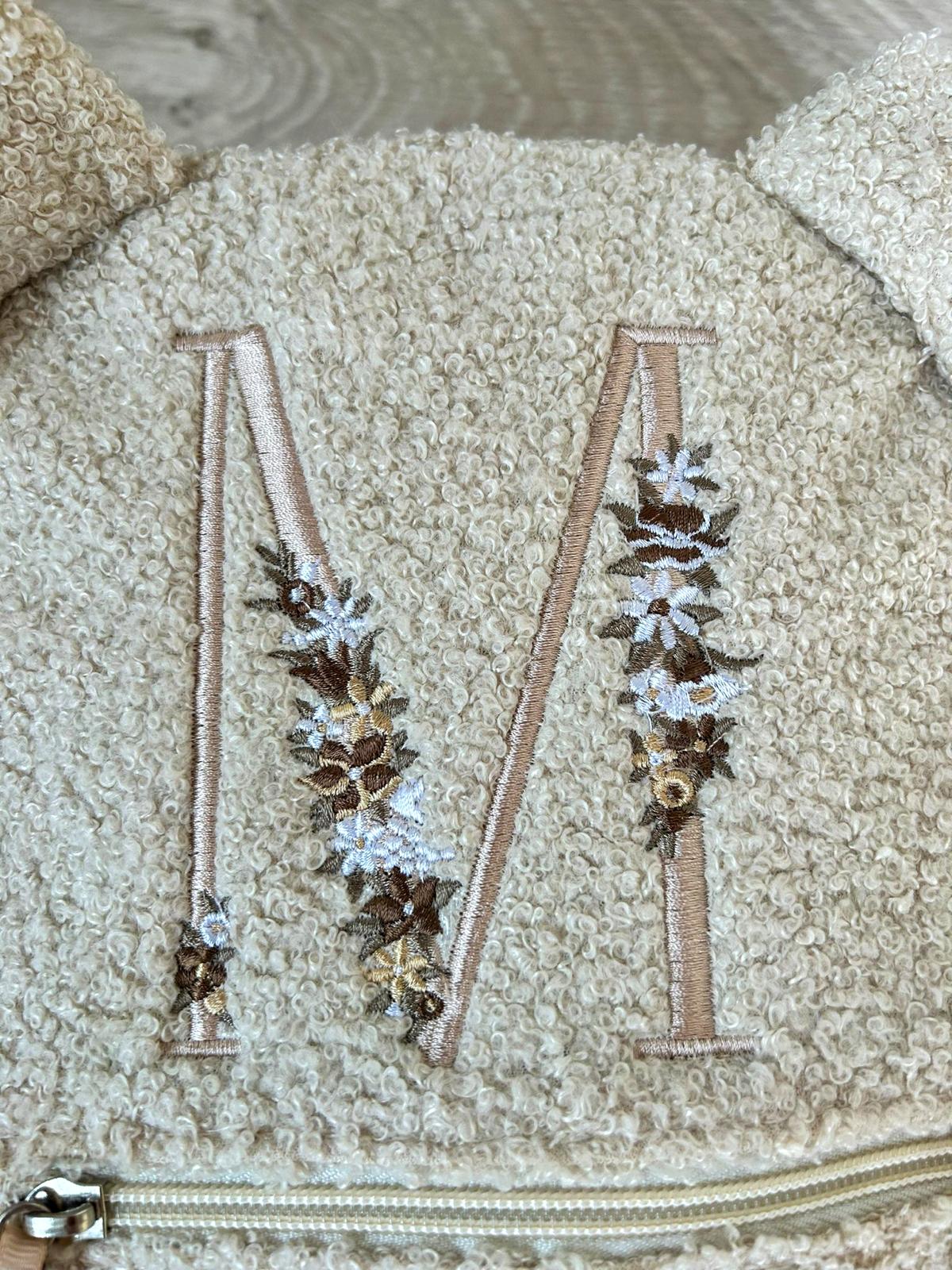 Deze teddy as wordt met één letter / initiaal gemaakt en je kunt de tas volledig naar wens personaliseren. Wil je liever een volledige naam kijk dan bij onze andere advertenties. Er is keus uit een kleurenpallet van beige / natuur tonen en een combinatie met lila. Wil je graag een ander kleurenpallet geef dit dan duidelijk bij opmerkingen aan.