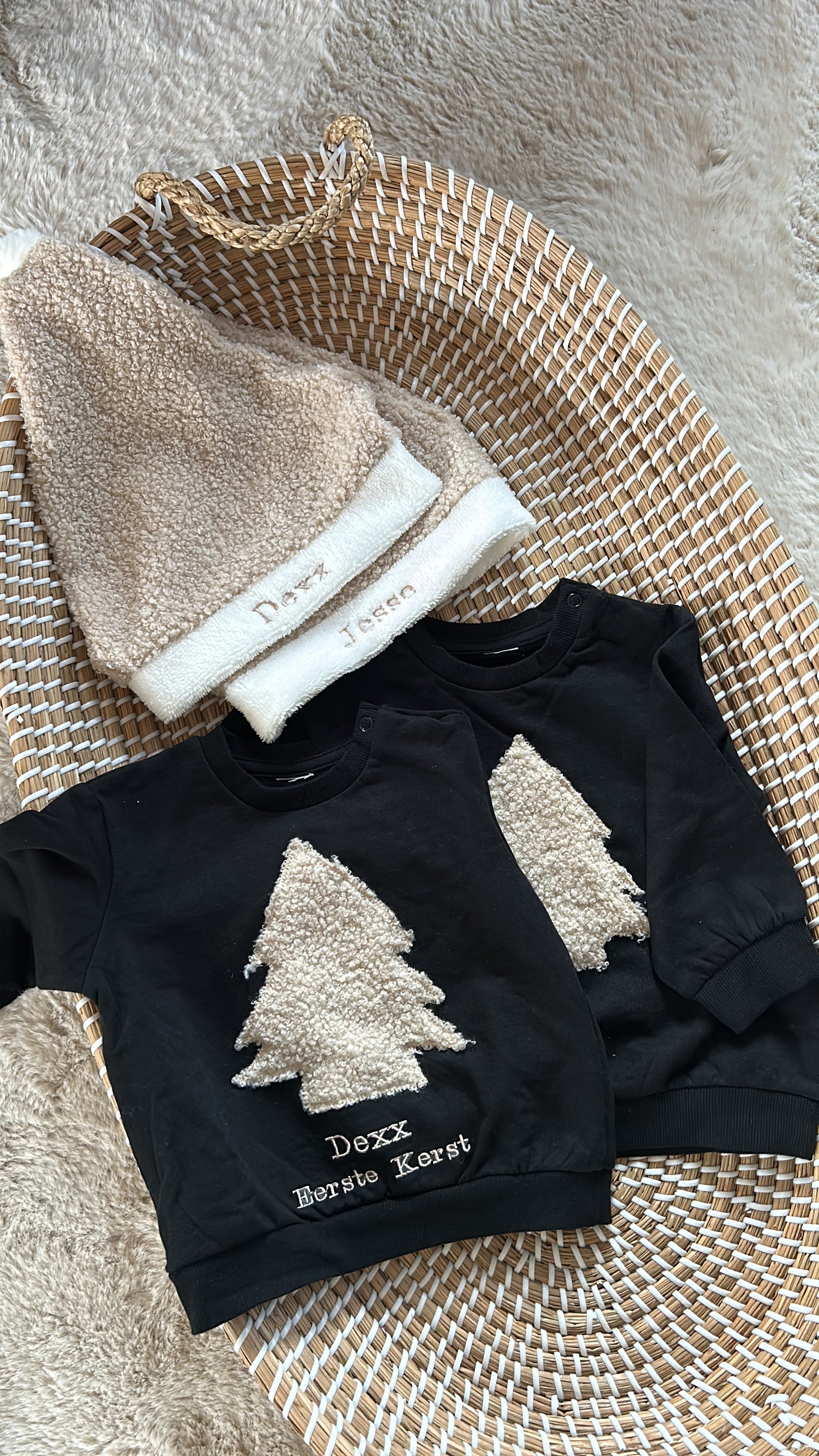 Maak dit kerstseizoen extra bijzonder met onze schattige kersttrui voor baby's en kinderen, voorzien van een prachtige beige teddy kerstboom. Deze trui is niet alleen heerlijk warm en comfortabel, maar ook een geweldig persoonlijk cadeau! De trui kan volledig gepersonaliseerd worden met een eigen tekst, zoals de naam van je kindje, "Baby's Eerste Kerst" of een unieke boodschap die speciaal is voor jou en je gezin. Zo maak je de kerst nog specialer en onvergetelijker.