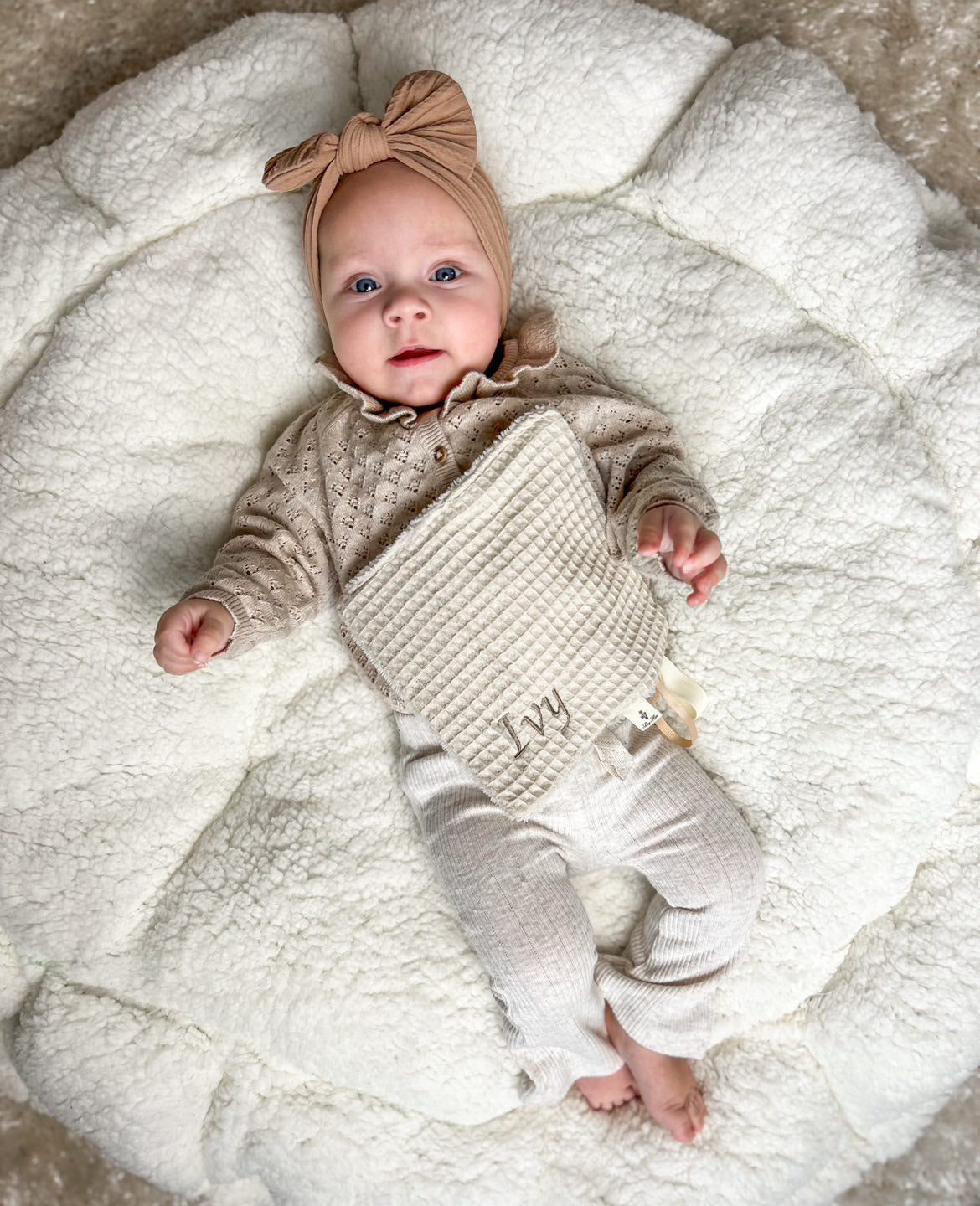 Ik heb dit knuffeldoekje gekregen samen met een mooie wikkeldoek van dit merk samen met een mooie zachte wikkeldoek. Super blij met het cadeau en de kleine speelt heerlijk met het knisperende doekje. Ik heb er zelf meteen nog een gekocht met een ander printje en de naam van mijn dochter Roos.