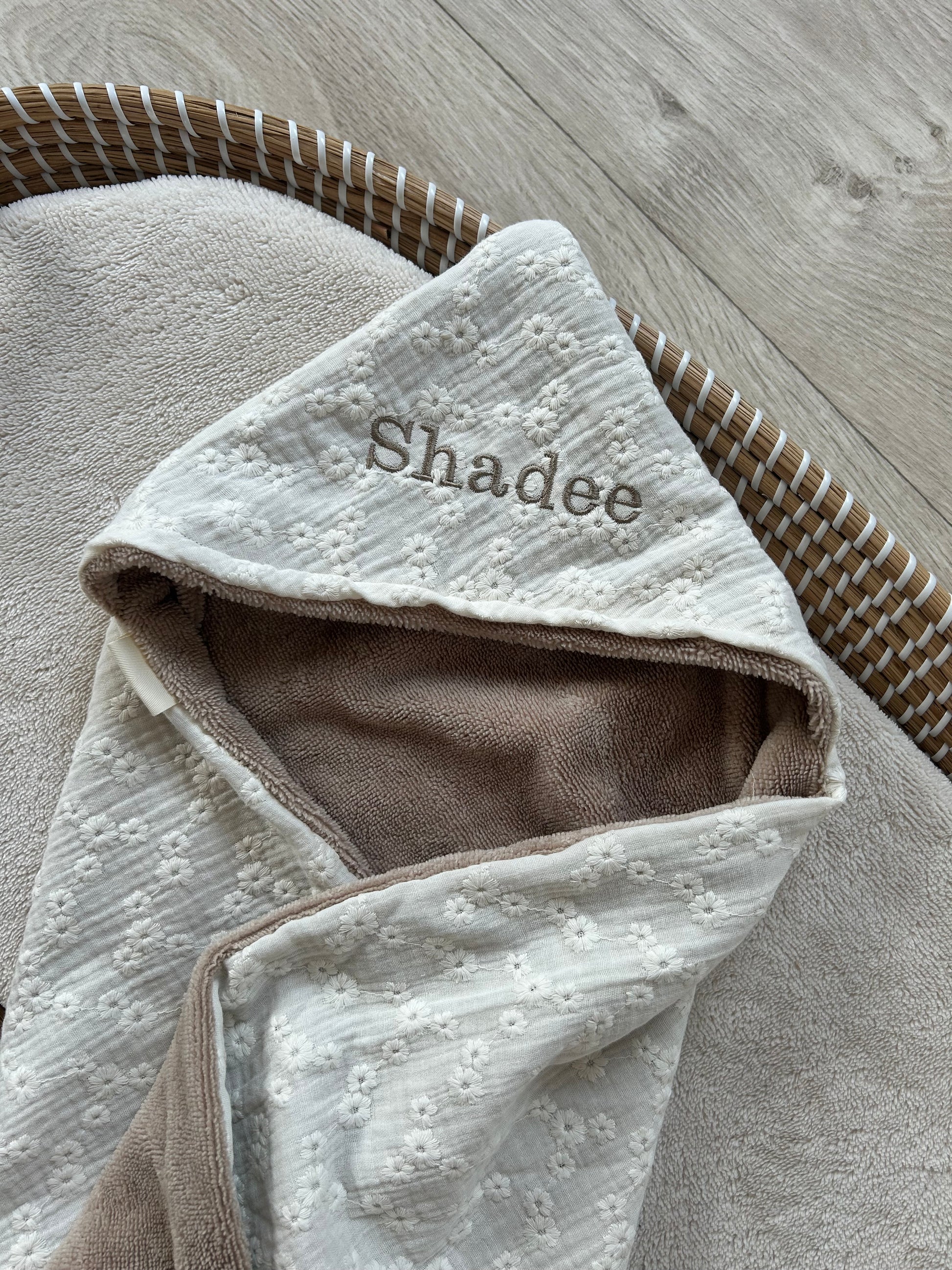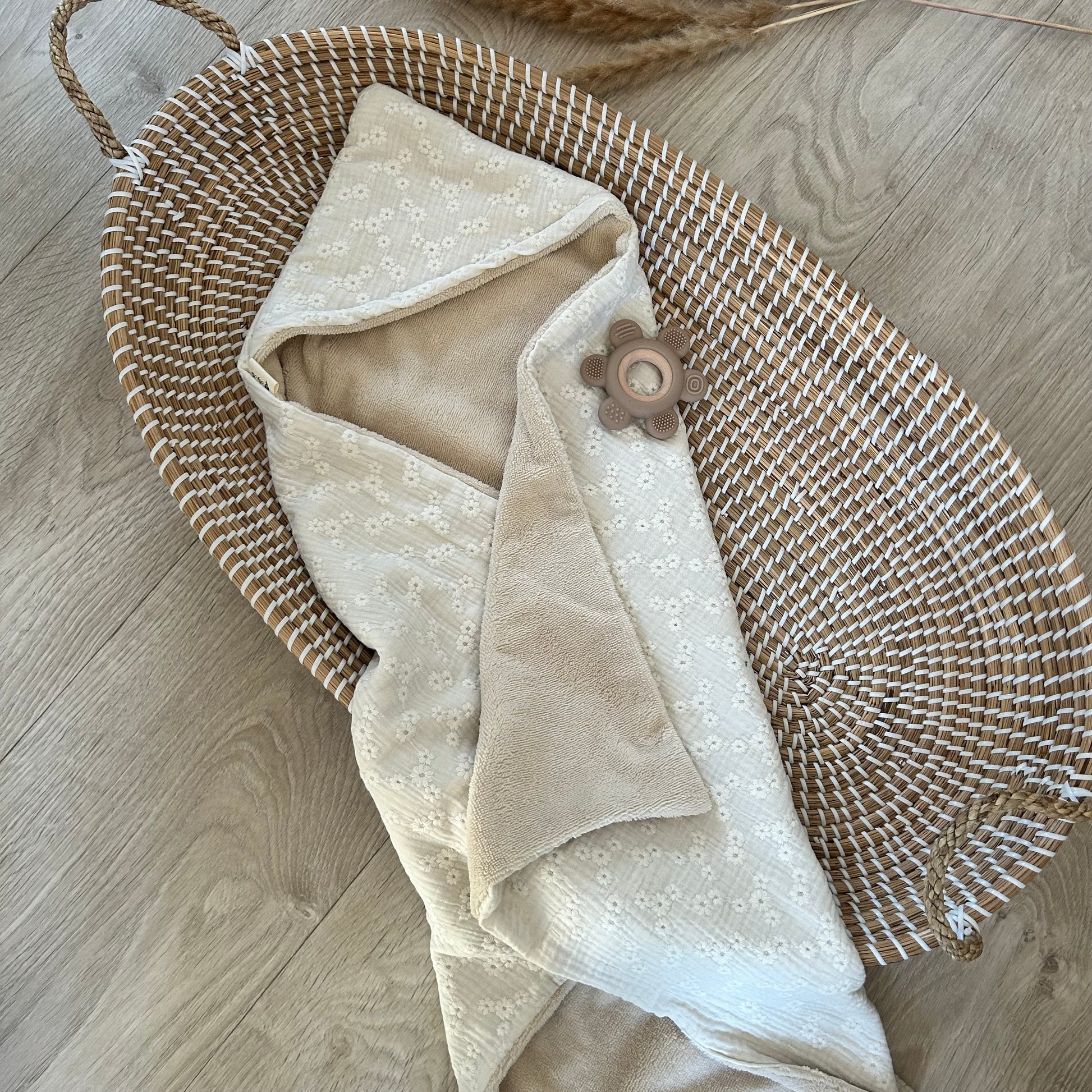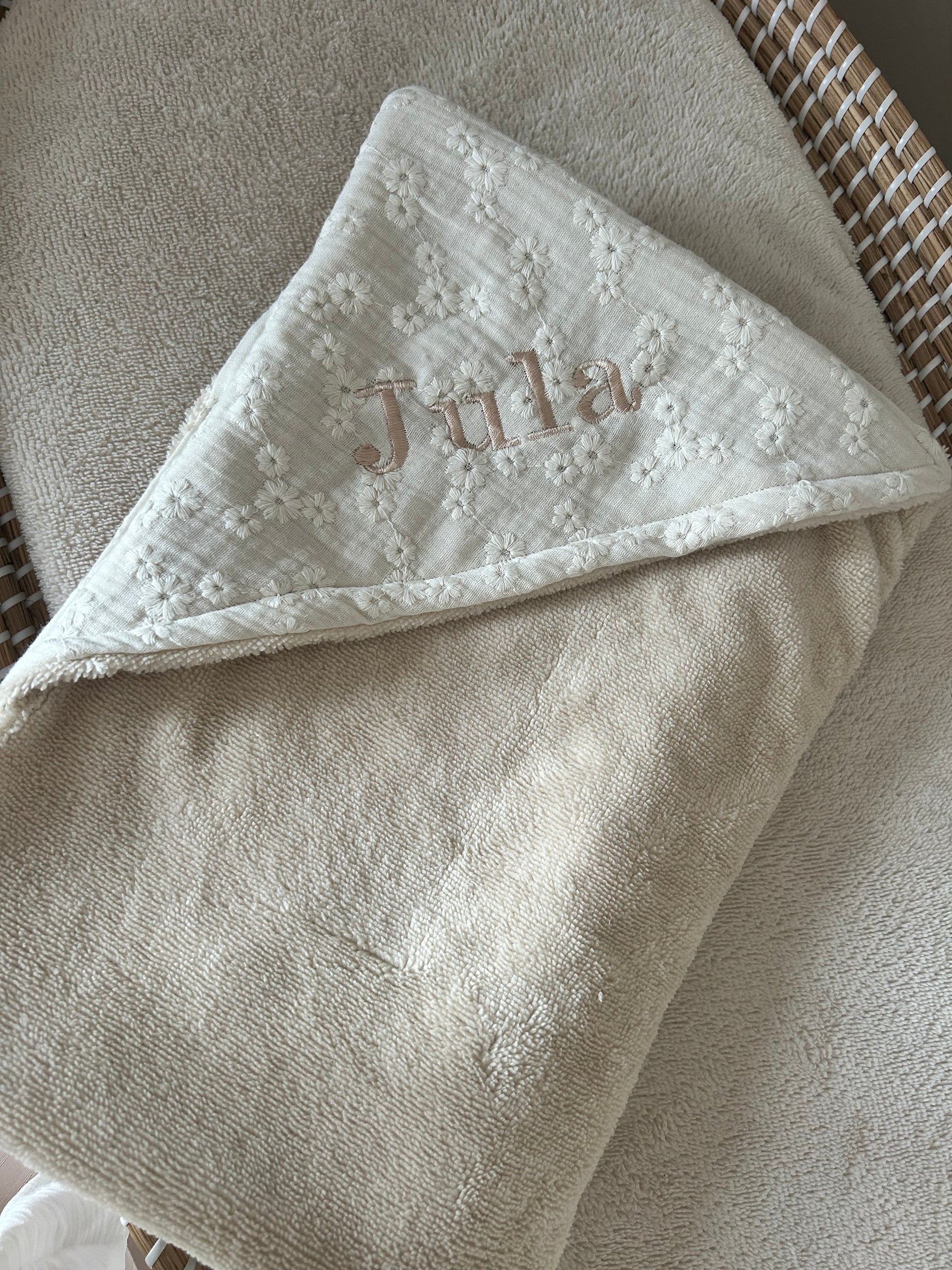 Wikkeldoek embroderie ecru met bamboe (optioneel met naam)