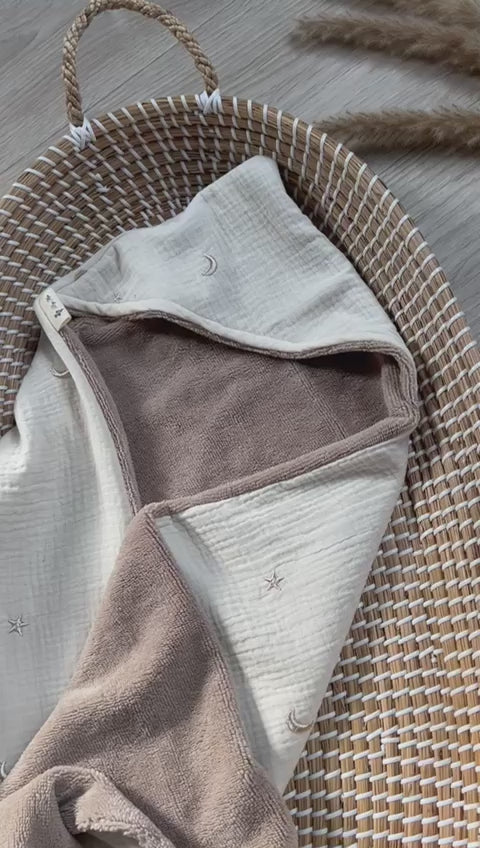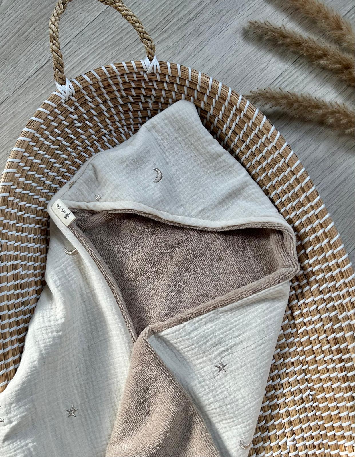 Disclaimer: De kleur kan anders uitvallen doordat de foto's en filmpjes vanuit een verschillende hoek en belichting zijn gemaakt. Deze hydrofiele doek heeft een opdruk met een goud effect. Houdt er rekening mee dat het ontwerp uit een stof gemaakt is waarbij elke cm anders is. Het kan dus zijn dat jou ster / maan / symbool net op een andere plek zit en dus niet precies hetzelfde eruit ziet als op de foto.